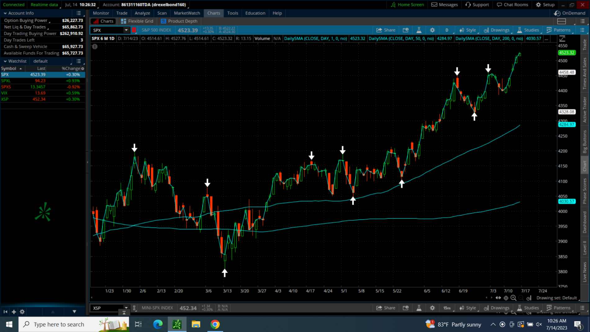 Hi @csricksdds... I like your indicator so far on the daily chart. However, I have a strange problem. The SPX has been up 5 days in a row now but the indicator never displayed in Up Arrow on July 10th or 11th. Would you happen to know why? Much obliged!