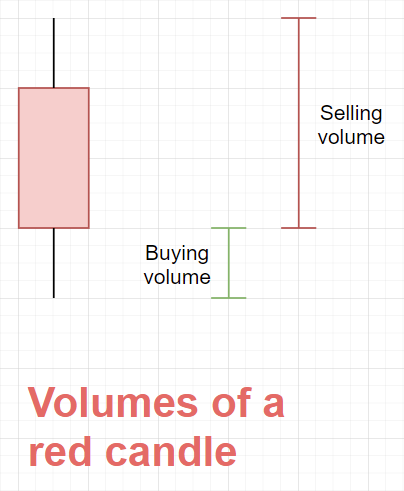 For Red Column: Total volume of red candles is higher than total green candles volume.