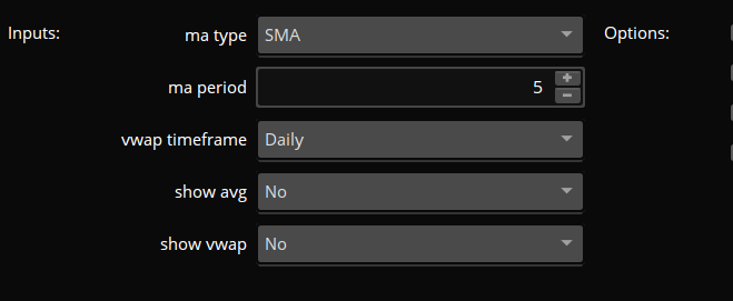 So below ma period would be ATR period. And above vwap timeframe there would be an: ATR timeframe (daily, weekly)