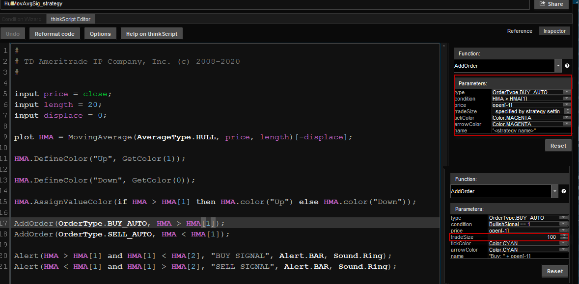 Hey! I would like to turn the default thinkorswim Hull moving average into a custom strategy. Whenever the color of the hull moving average slope changes its color from up / down I’d like the strategy to open / close an order only on the close of the candle / bar. In addition I would like an alert to pop up whenever all of the conditions are met. I'm not much of a coder myself so hopefully this isn't too complicated...
