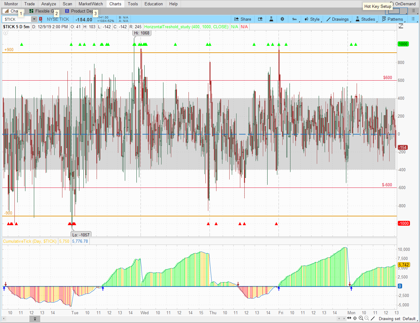 #When TICK is higher than +750 or lower than -750, then trade with Caution.
