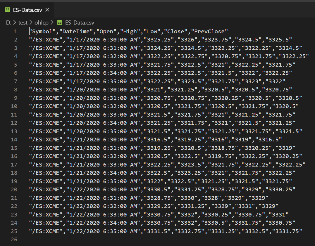 /ES:XCME 1/22/2020 12:00:00 AM 3321.25  3337.5 3315.25 3317.25   3320.25