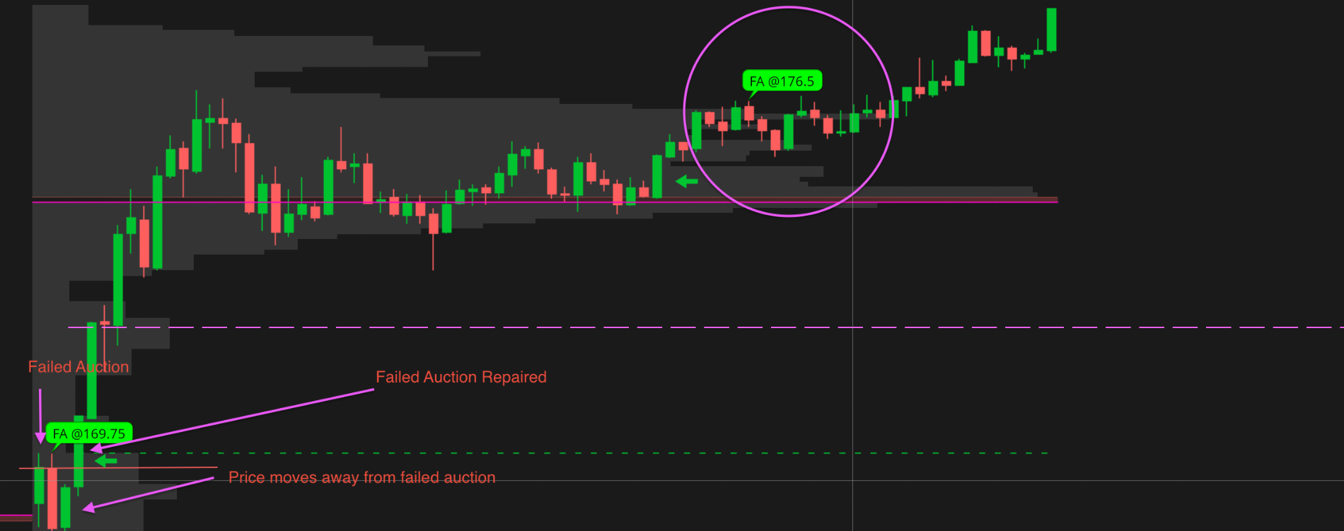 - If I am about to go short and I see there is an un-repaired failed auction at candles above my short price, I will be cognizant about that fact before entering the trade. Or maybe even not enter the trade.