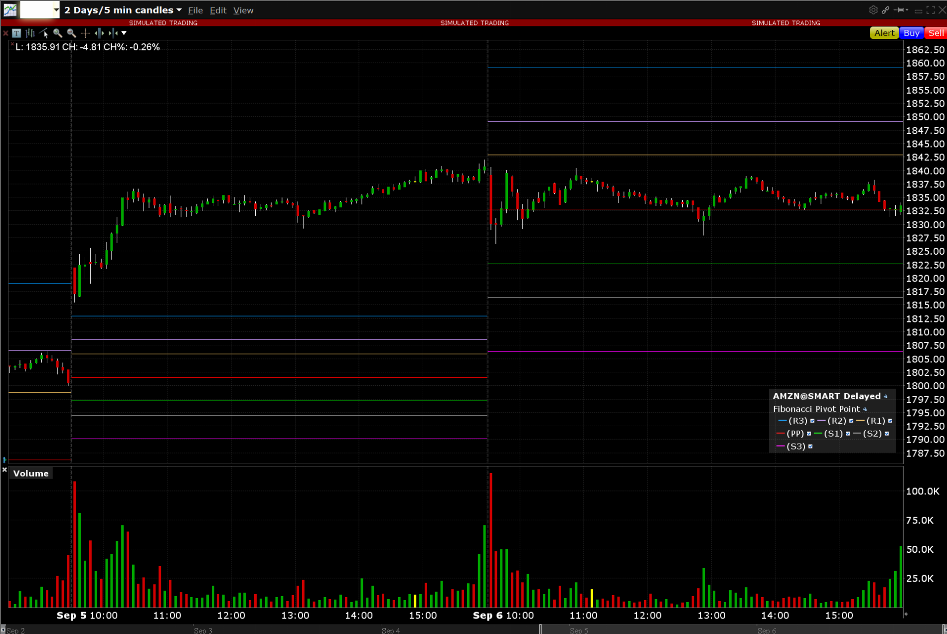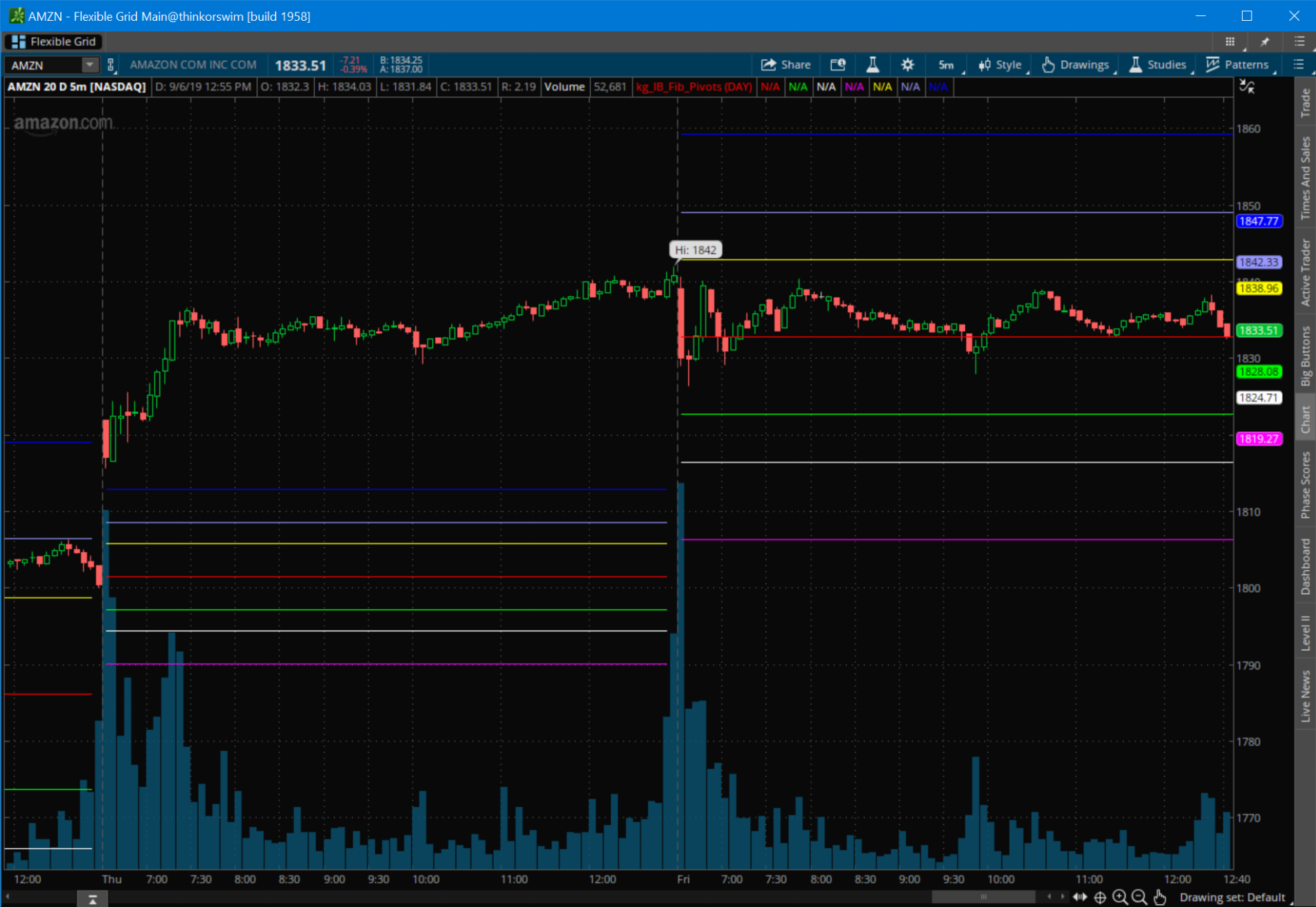 The code is the fibs based on prev day close (could change to weekly, monthly if desired with some modification).
