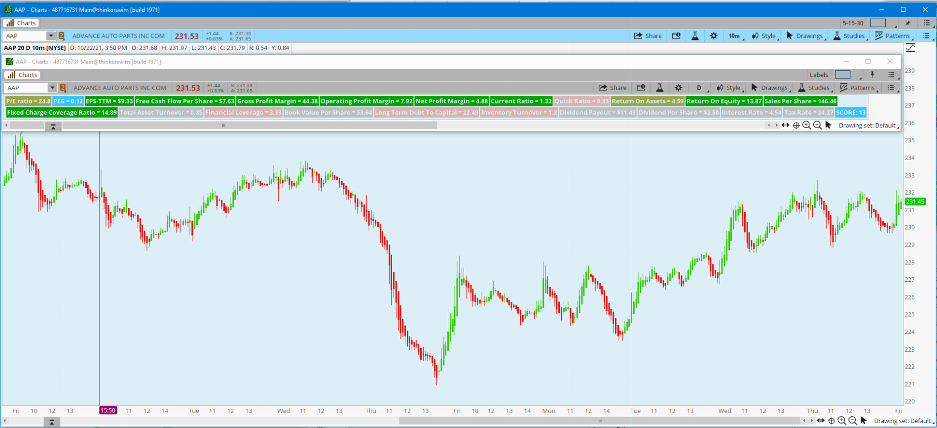I know that fundamentals information is available under the Analyze tab. I'd like to be able to get the price/earnings and price/book values as labels at the top of my charts.