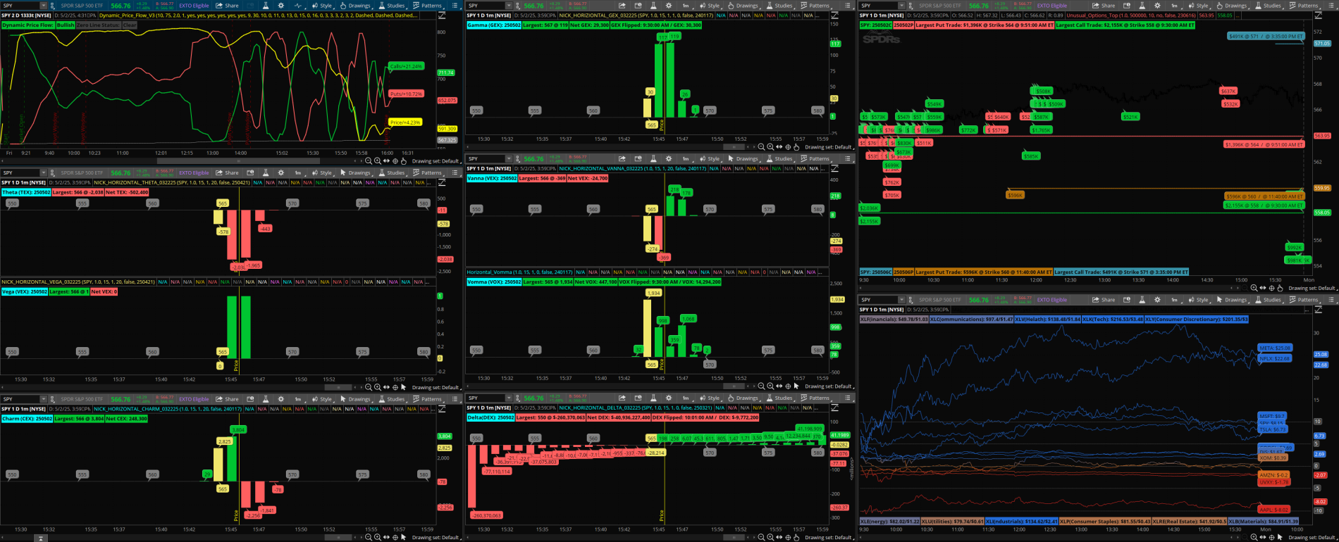 This is actually one of the best group of indicators i've come across for Thinkscript, I broke apart the CEX/DEX calculations from this script and just added a label for NET vs NET+histogram bars, and utilize another script for Gamma exposure strikes and NET as this one has a 10+- from open price of the stock or ETF vs latest price. This creates a sort of BIAS matrix I can execute comfortably off with 0DTE only on QQQ. Dynamic price flow is really valuable when deciding which levels can have the most effect on price once bias is established. thanks for the share
