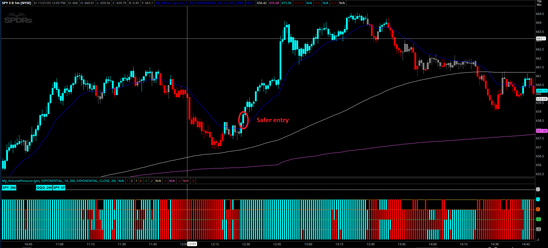 This is really cool, but also highlights a common experience I have -- momentum style indicators rarely work out (for me). It often feels like, when "everything lines up", you're entering at the top of a move. That's why I've focused my attention on trying to perfect reversals, since ultimately I want to trade 0DTE SPY options and you need explosive moves and not some slow grind up.
