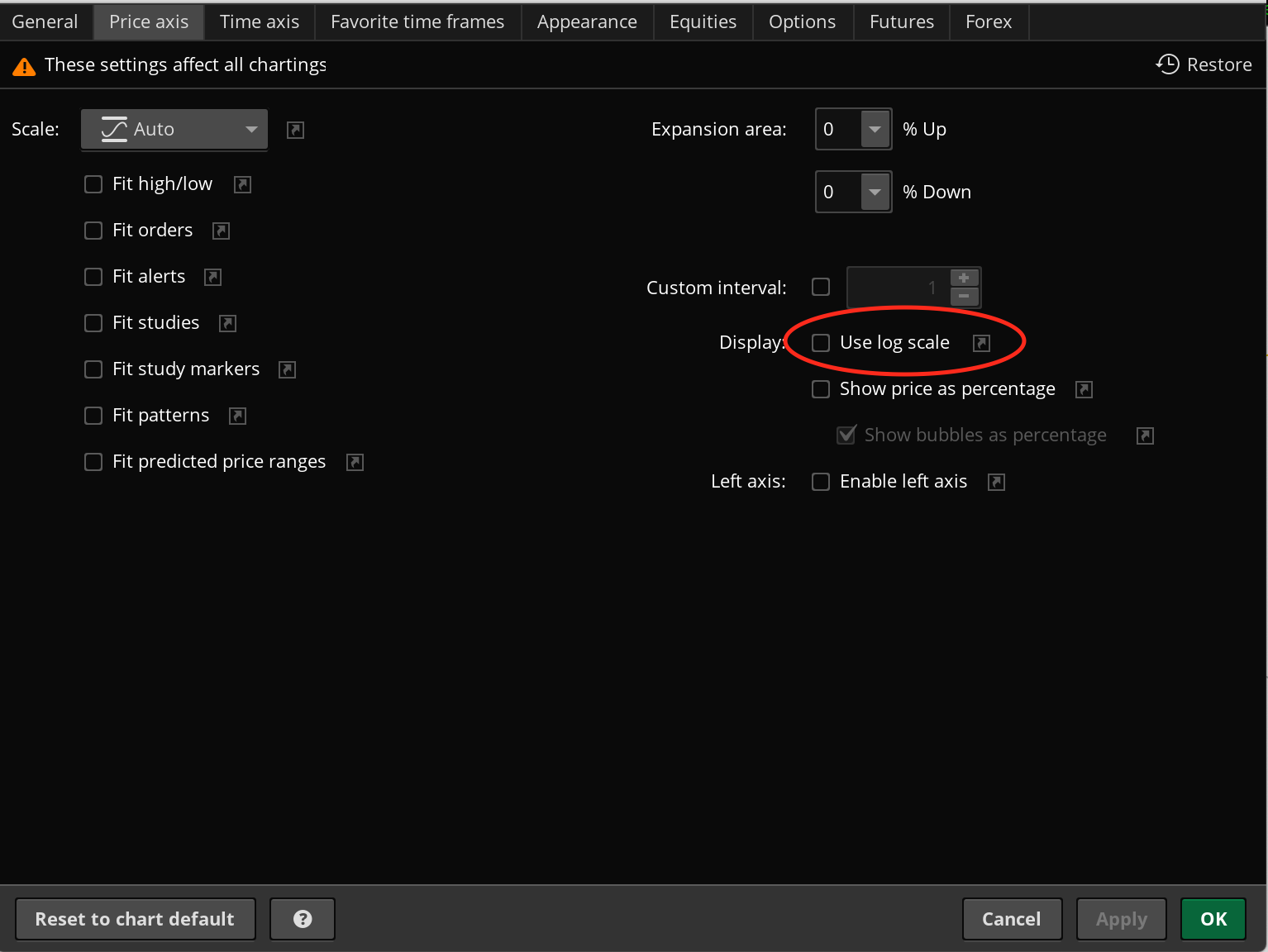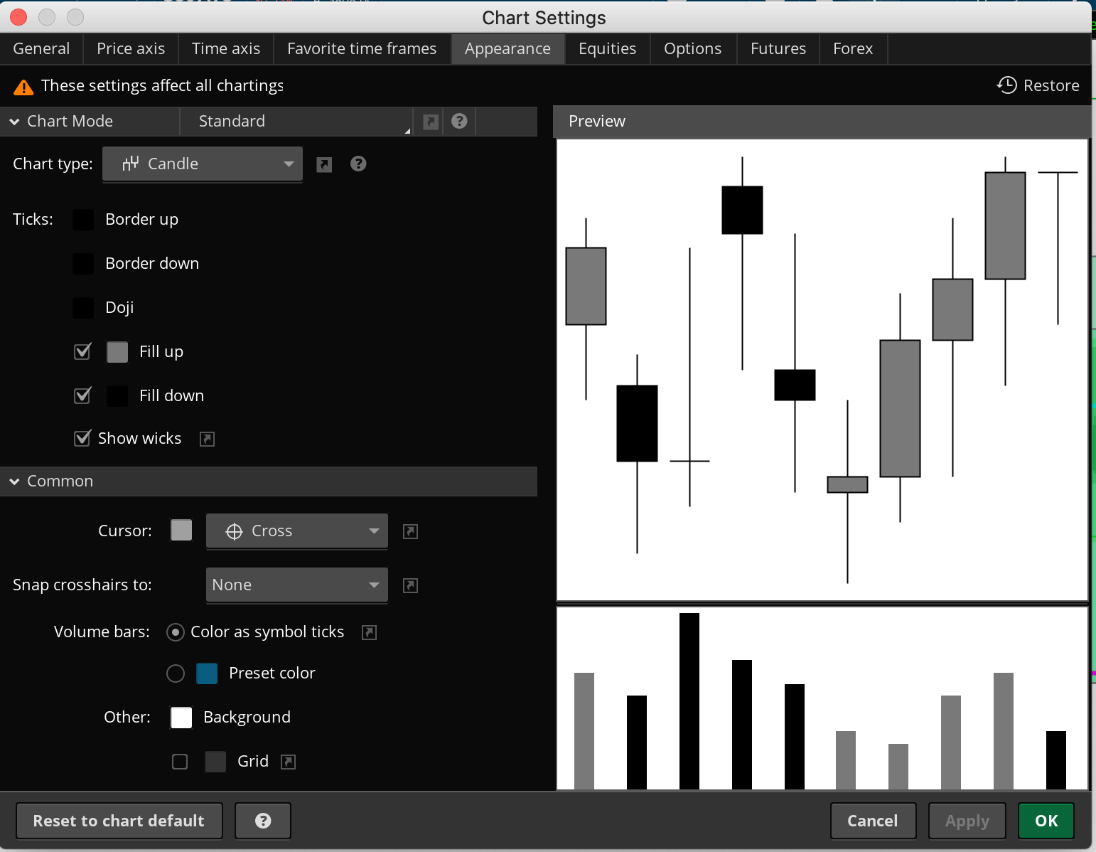 I find these are the best settings to the overall appearance the chart if you're using the green/red overlays: