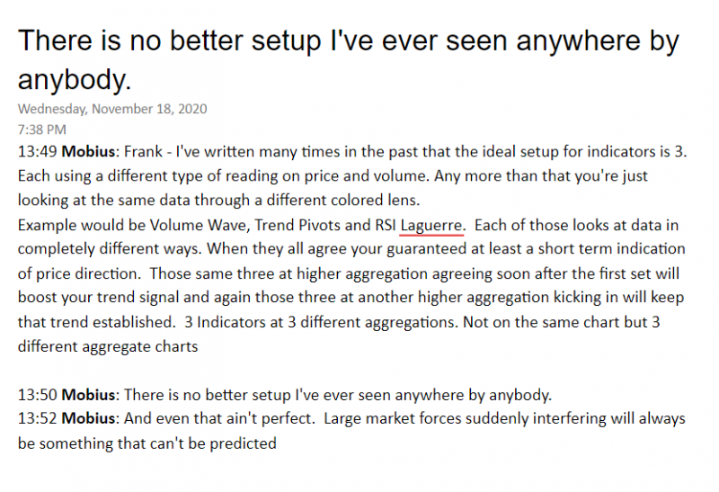 In this chat, Mobius was attempting to educate. He is saying, to maximize your potential, you need to look at multiple timeframes and support / resistance, before entering a trade no matter what your strategy.