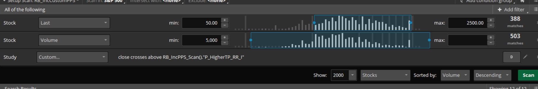 Also, Higher_PP_I is a better criteria then Higher_RR_I. PP is the balance of SS (support) and RR (Resistance) Pivots. You can even do Close > Higher_PP_I instead of cross oever for faster results.