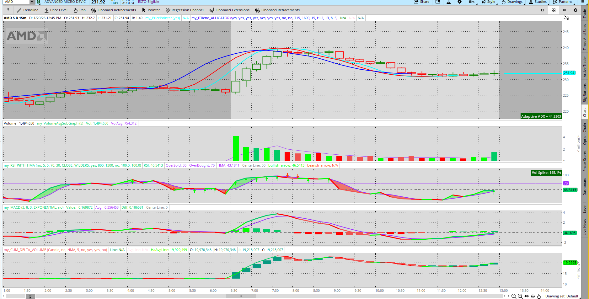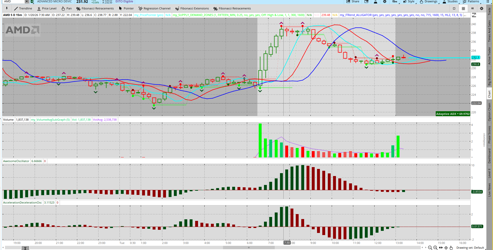I really liked using the Alligator but recalling the potential for late entries got me to thinking that maybe this indicator could be made better by removing the lag.