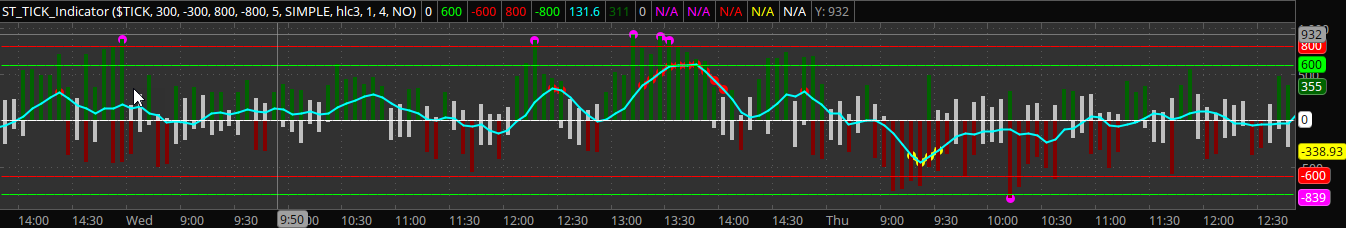 TickHigh.AssignValueColor(if high(TICK_Symbol) >= SMA_High_extreme then GlobalColor("TickHighBars") else GlobalColor("QuietTicks"));