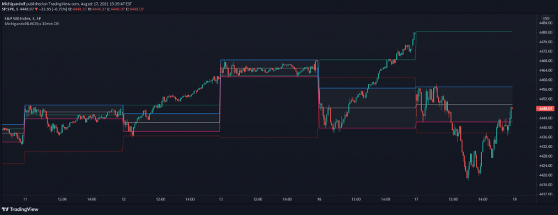 There are options in this study to show the range as a label in the top left, to show/hide the extended targets and also to add additional 1/4 and 3/4 lines inside of the range. You can also enable bubbles to show that display the OR highs and lows but need to have an expansion area of 5 bars or so to display properly. And finally, there is an option to color your candles if they fall outside of the OR.