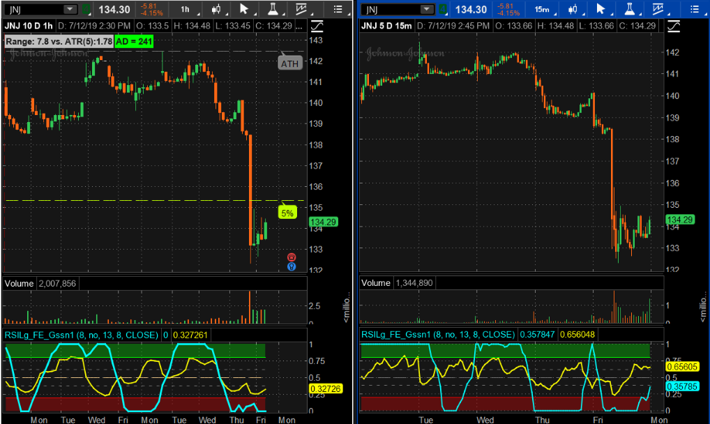 #If RSI Laguerre is descending and FE over .6, that tells me something is changing and I'm already looking at an equity I've determined is about to make a polarity change. So the worse case that happens is that the security grinds sideways for a few days.