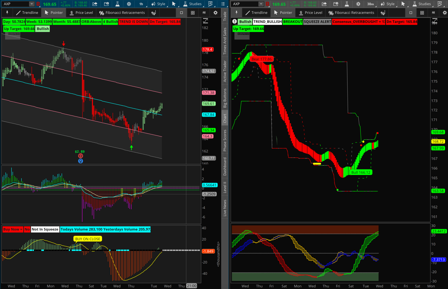 Thank you @HODL-Lay-HE-hoo! I will copy your watchlist column. I have another question about Big 4, every time I log in on Tos the colored candles is not working correctly on some charts, I don't know if the indicator can only be open once or not I'm going to share a screen of spy and qqq with Big 4, so you can see the issue with Big 4 (QQQ is not changing the color of the candles). @HODL-Lay-HE-hoo! I'm going to add @TradingNumbers on my post maybe he knows what I need to change on my setup to eliminate the issue with Big 4.