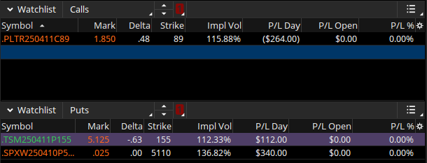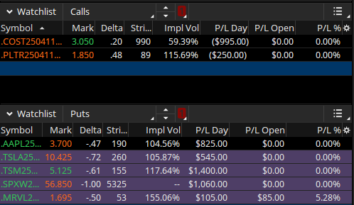 My watchlists are simply place holders. I have Call/PUT watchlists that I add the options contracts every morning before and after market starts.