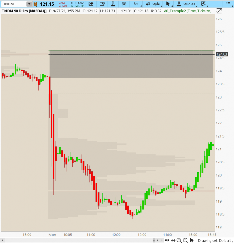 As for volume profile here is a picture of the study I use on TOS. It looks at the volume profile for every individual day, so the levels are pretty much the same across all time frames. I can post the settings I have if you're interested :)