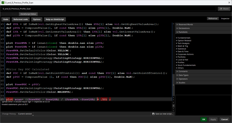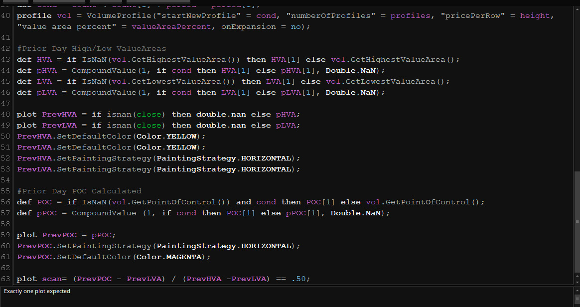 I am trying to make a scan where the POC is in the middle of the distribution (middle of value area), this would identify B and D shaped profiles but i cannot fix this error, would really appreciate some help.