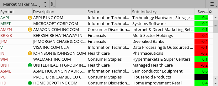 It shows colors and for some tickers it is accurate but many of them aren't so I'm guessing it's deriving the VWAP from a different time frame. I'm trying to show in the Watchlist whether a ticker is above or below the VWAP at the current price, possibly within 5 bars on the 1 minute time frame?